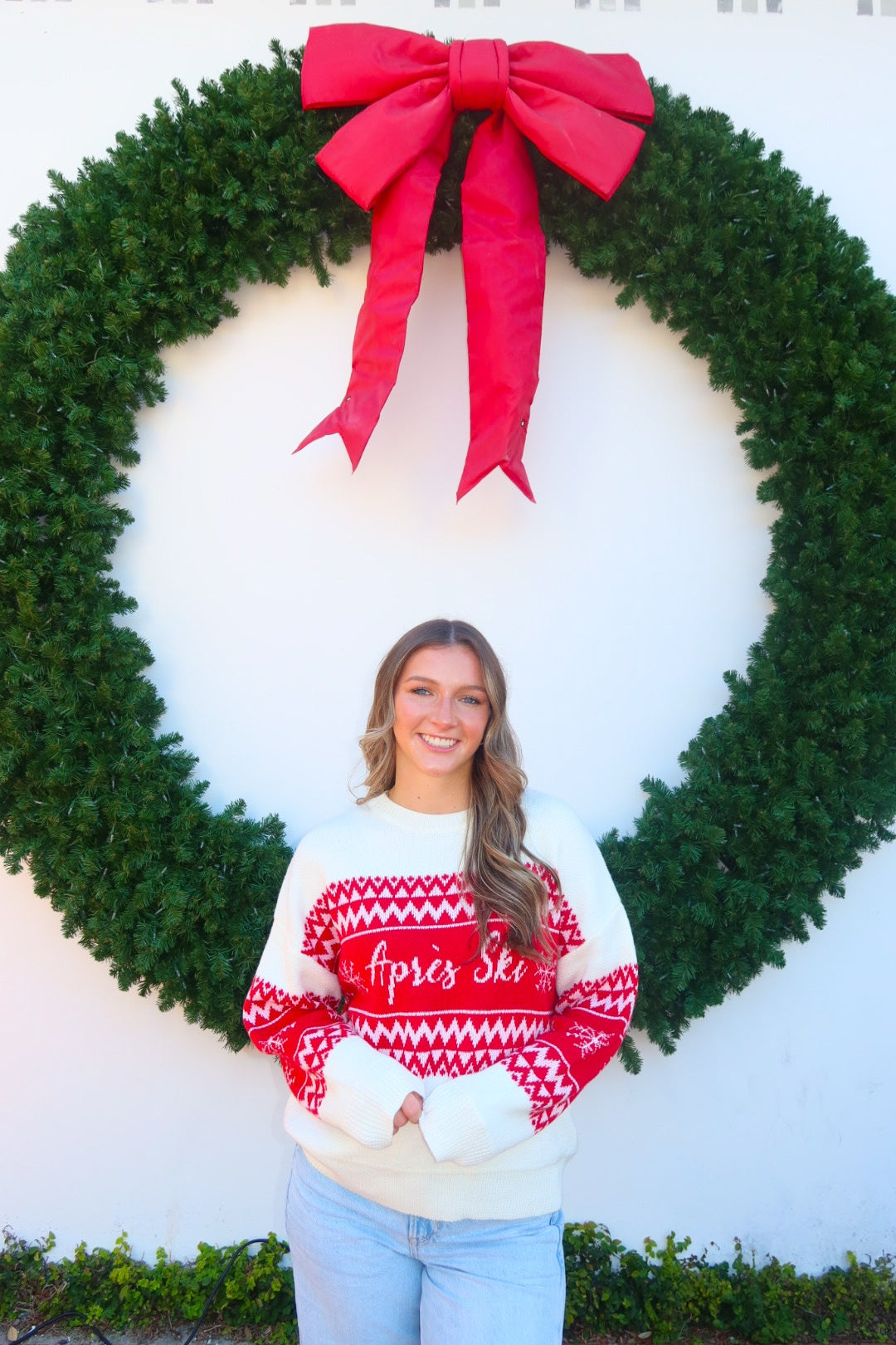 Get cozy in the festive red-and-white “Après Ski” Christmas sweater — the perfect piece for holiday parties, ski trips, and all your winter plans. Soft, warm, and easy to style with denim or leggings for a cute seasonal look.